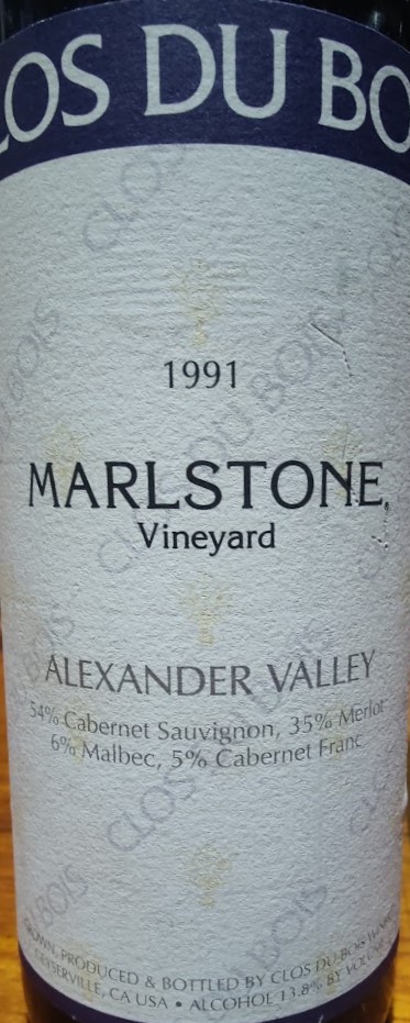Winery Notes: Since its first release in 1978, Marlstone has been recognized as Sonoma County's premiere Bordeaux style wine. The 1991 vintage is a blend of Cabernet Sauvignon, Merlot, Malbec and Cabernet Franc, which was assembled the following spring following harvest. The finished wines were aged in our cellar for 30 months is 60-gallon French oak barrels. Luscious flavor and elegant balance have always been hallmarks of Marlstone and this vintage provided both. The wine is distinctively aromatic and smooth of the palate