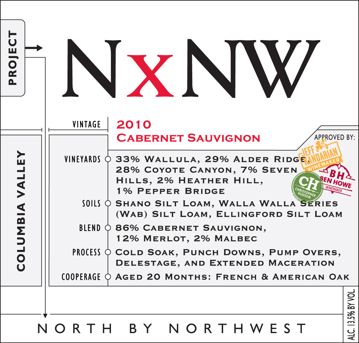 A blend of 86% Cabernet Sauvignon, 12% Merlot and 2% Malbec in both French and American oak from a variety of vineyard sources like Wallula, Alder Ridge, Coyote Canyon, Seven Hills, Heather Hill and Pepperbridge. A classic Washington state bouquet of dark cherry and currant berry fruit on the nose with notes of dark coco and sweet tobacco spice. A good amount of dark currant berry, fruit with nice structure and the tannins still a bit dry on the finish but plenty of fruit here this wine needs to open up. Finish 40+ Very Good +