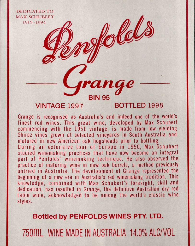 (94 points) The 1997 Grange (a blend of 96% Shiraz and 4% Cabernet Sauvignon) looks to be a classic Grange, although slig...